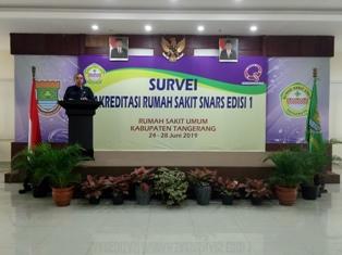 TIGARAKSA - RSUD Tangerang menargetkan meraih hasil paripurna (sempurna) dalam Survey Akreditasi SNARS Edisi I. Acara tersebut dibuka langsung oleh Bupati Tangerang Zaki Iskandar di ruang Aula RSUD Tangerang, Senin (24/6/2019).