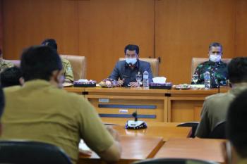 TIGARAKSA, (JT) - Sekretaris Daerah (Sekda) Maesal Rasyid memimpin rapat Pemilihan Kepala desa serentak 77 desa di Kabupaten Tangerang. Rapat berlangsung di Ruang Rapat Wareng Gedung Bupati Tangerang Jalan H. Somawinata No 1 Puspemkab Tangerang. Senin, 20/09/2021.