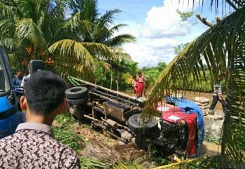 Sopir Ngantuk, Dumptruck Semen Nyebur ke Kali