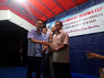 TIGARAKSA - Anggota DPRD Kabupaten Tangerang Tasripin menghadiri acara penutupan turnamen bola Voly tingkat RT se-Perumahan Mustika Tigaraksa pada Minggu (29/1/2017). Politisi asal PAN ini imut menyerahkan piala kepada peserta.