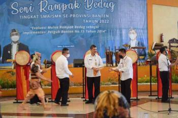 SERANG, - Pemerintah Provinsi (Pemprov) Banten melalui Dinas Pendidikan dan Kebudayaan (Dindikbud) Provinsi Banten, menggelar Festival Seni Rampak Beduk Tingkat SMA/SMK se-Provinsi Banten Tahun 2022. Festival Rampak Bedug ini mengusung tema 'Evaluasi Mulok Rampak Bedug sebagai Implementasi Pergub Banten Nomor 15 Tahun 2014'.