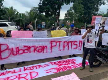 "Kita hari ini menyampaikan aspirasi, setelah kita sebelumnya menggelar aksi yang sama di Kantor Balaikota Tangsel. Dengan tuntutan pembubaran PT PITS sebagai BUMD Kota Tangsel," ucap Saiful.