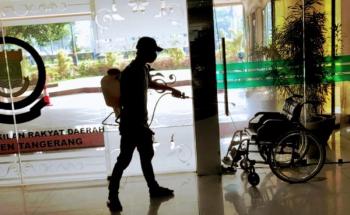 Wakil Rakyat Terpapar Covid-19, Gedung DPRD Kabupaten Tangerang Disemprot Disinfektan