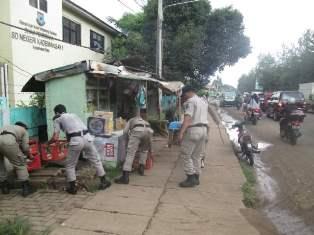 SETU – Satuan polisi Pamong Praja (Satpol PP) menertibkan 12 Pedagang Kaki Lima (PKL) liar di jalan raya Puspitek Kecamatan Setu Senin (1/2/2016). Tindakan tegas tersebut diambil, karena dilokasi tersebut sudah menggangu kenyaman dan ketertiban.